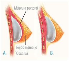 After the incision is made, the implant is inserted in a bag underneath A. the pectoral muscle (Sub muscular placement) or B. Direct through the breast tissue, over the pectoral muscle (Sub glandular placement).